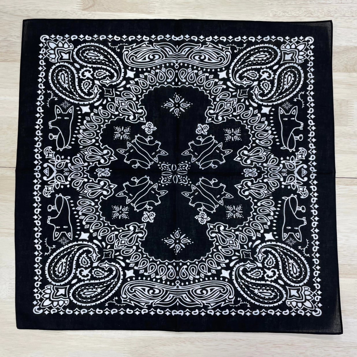 「リスペイズリーバンダナ」を作りましたので、一度のお買い物につきバンダナを1枚お付けさせていただきます。